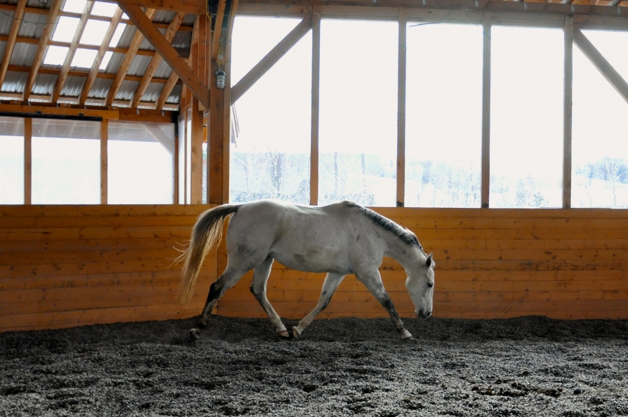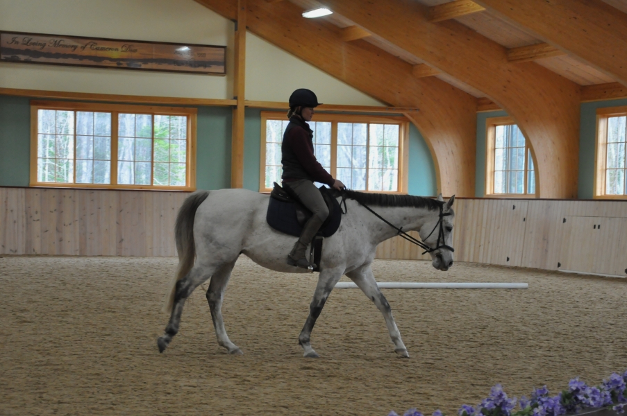 When he first came to us, Acadia appeared sound, but after we started him in regular work, it became clear to us that he had a soundness issue. After careful assessment at Tufts Medical Center, through x-rays and various other diagnostic tests, it was determined that he had navicular disease. This can be caused by many different issues, but it was clear that in Acadia’s case it had been on-going for some time and it had been left untreated. If treated early on and properly, many horses with navicular can go on to lead very fulfilling and normal lives.
