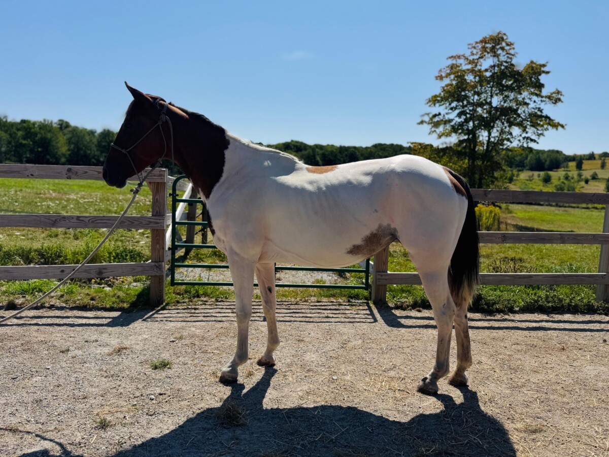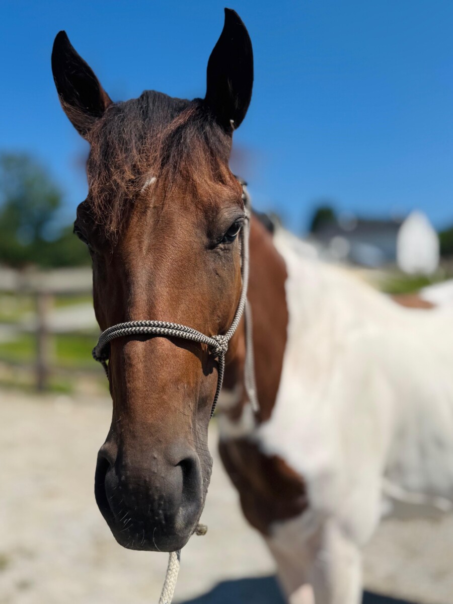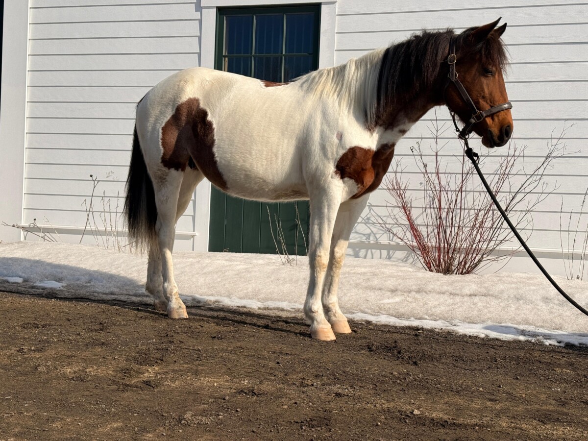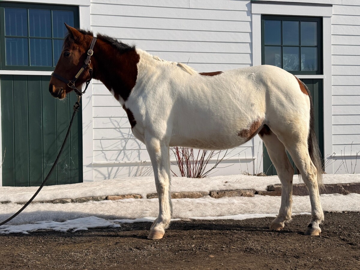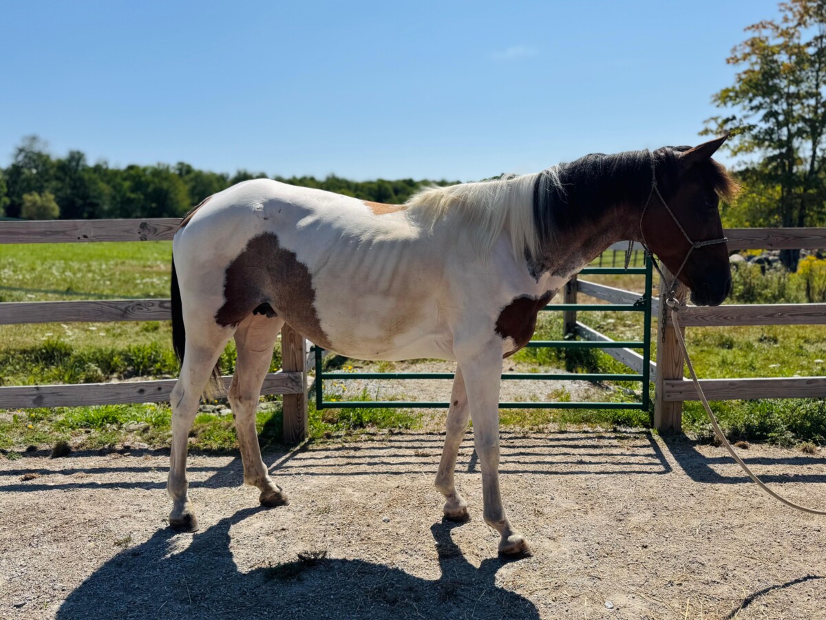 Cheyenne is a 7 year old grade paint mare joining us for training from Gerda’s Equine Rescue in August 2025. An initial evaluation found a number of old injuries that will likely prevent Cheyenne from having a future as a riding horse, but she has plenty to learn about daily handling! We are looking forward to getting to know this pretty mare, and learning how we can best help her.