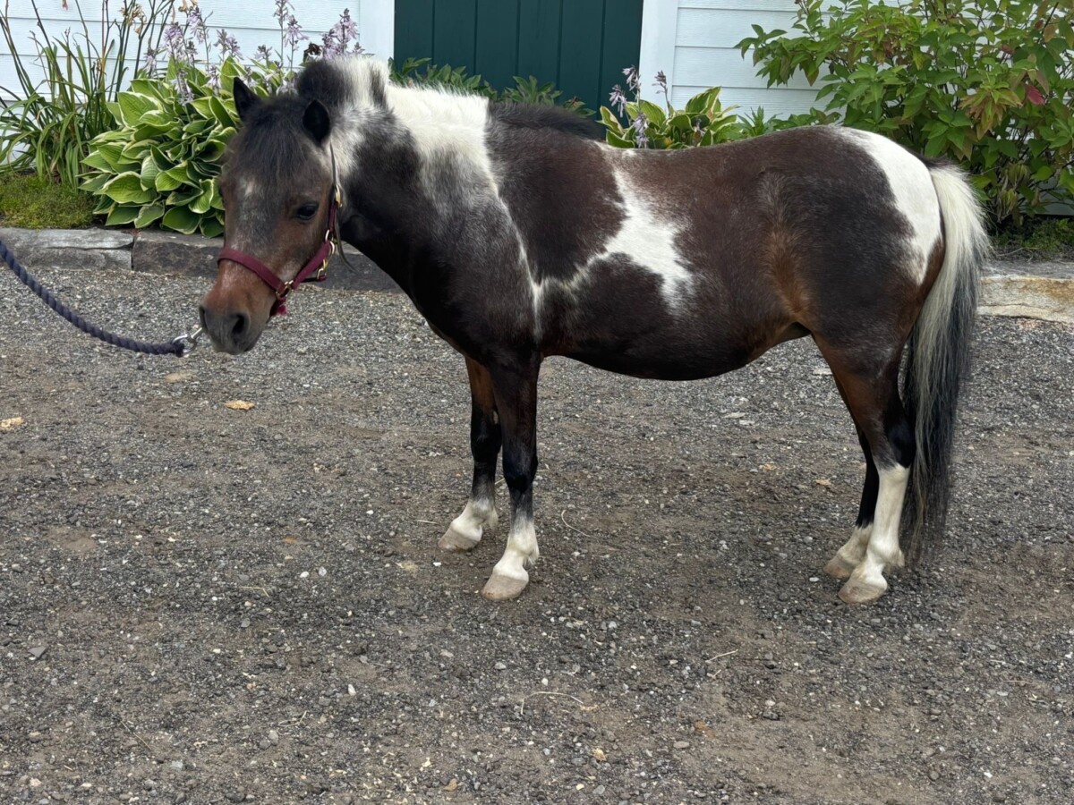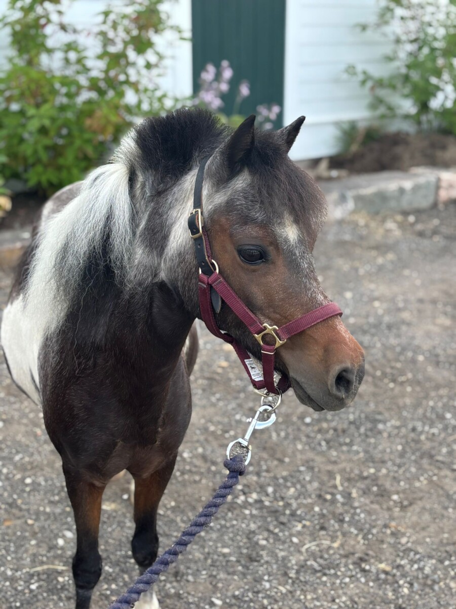 Daffodil is a 15-year-old miniature mare joining us for training from the MSSPA in August 2025. She is a friendly, been-there done-that mare who was shown in-hand in her previous home. We will be working to refine her groundwork skills, introduce her to a saddle and driving tack, and maybe teach her a few tricks while we help Daffodil search for her forever home! We are looking forward to helping this sweet girl blossom!