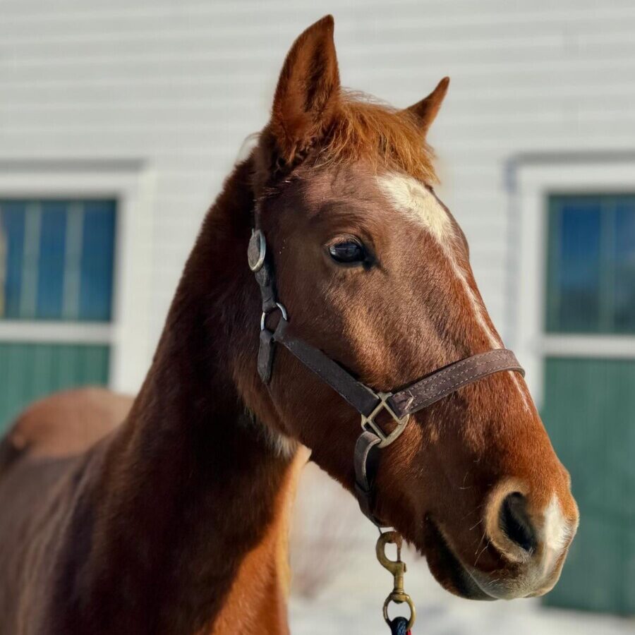 February 2026 update: Jasper is proving to be a very smart and sensible student. He stands well for grooming and the farrier (with a little encouragement from his handler), and has a solid grasp of basic groundwork such as circling, yields, and back up. Our current focus is on helping him to soften and yield through his body when in motion, so that he can start to find a more relaxed posture and stretch. We use body work, lateral movements and poles to help with this concept. We are also introducing liberty work in the round pen, and soon will introduce lines and a surcingle to begin ground driving. Jasper loves playing hard in turn out with his best pal Smokey, and will be one who wants a playful friend in future.