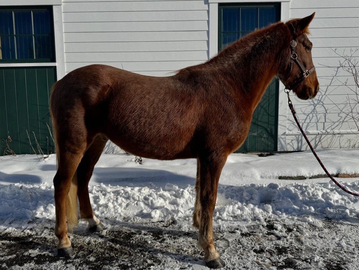 Jasper is an adorable 14 hh, 4 year old Mustang gelding who comes to us from our friends at Kritter Ridge Equine Sanctuary in Stowe, Maine. He was pulled from auction earlier this year, and spent several months with a trainer in NH being ‘gentled’ before returning to Kritter Ridge and subsequently joining our program. Jasper was unhandled prior to this summer, but his previous trainer did a wonderful job as he is curious, friendly, and very game to learn new things.