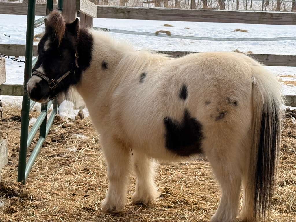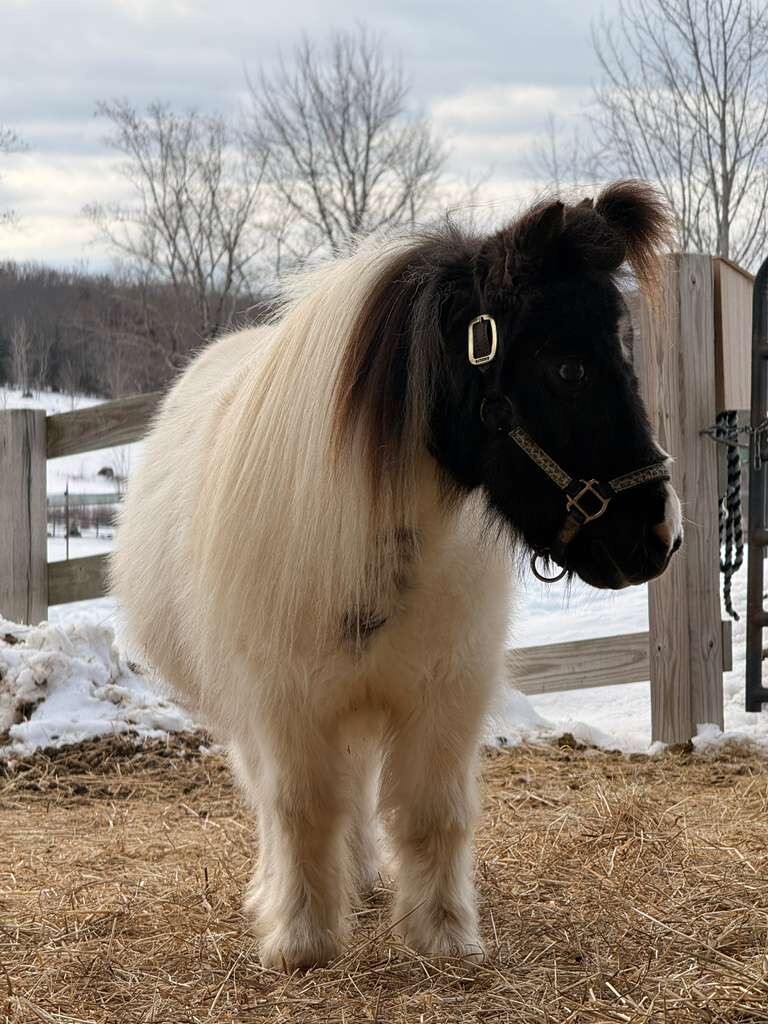 Weezer is a 16-year old mini gelding who joins us for training from Home At Last Farm, along with his little buddy Scout. He has only just arrived and we look forward to getting to know this adorable fluff ball as he settles in. We do know that he will require monthly allergy shots which he is quite good for, and we will be sure to post further info as it becomes available.